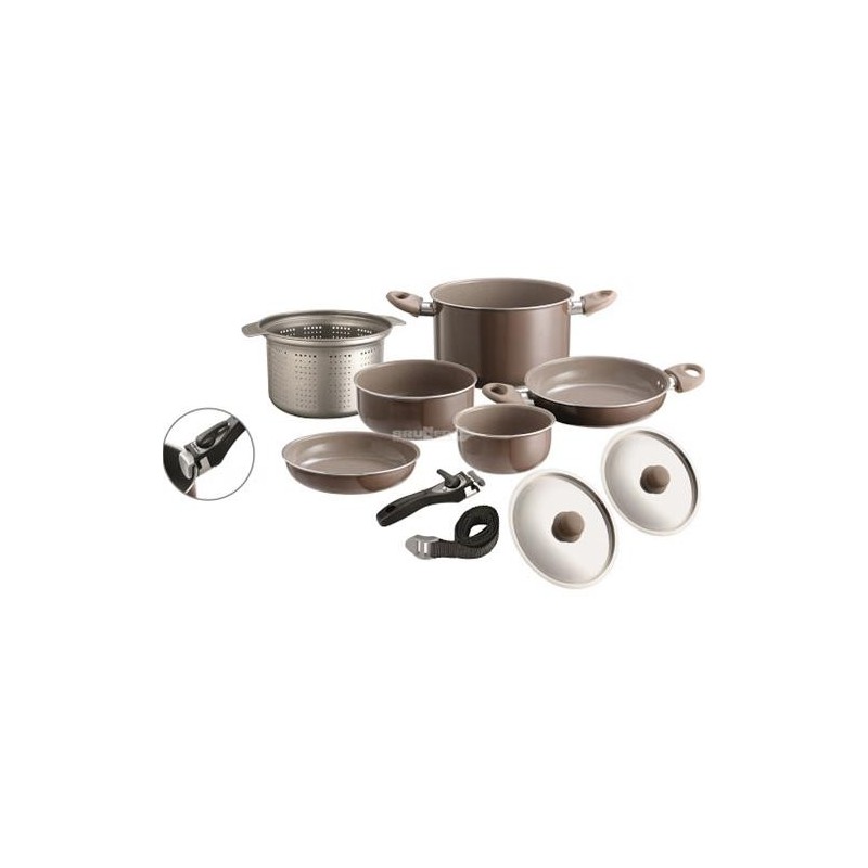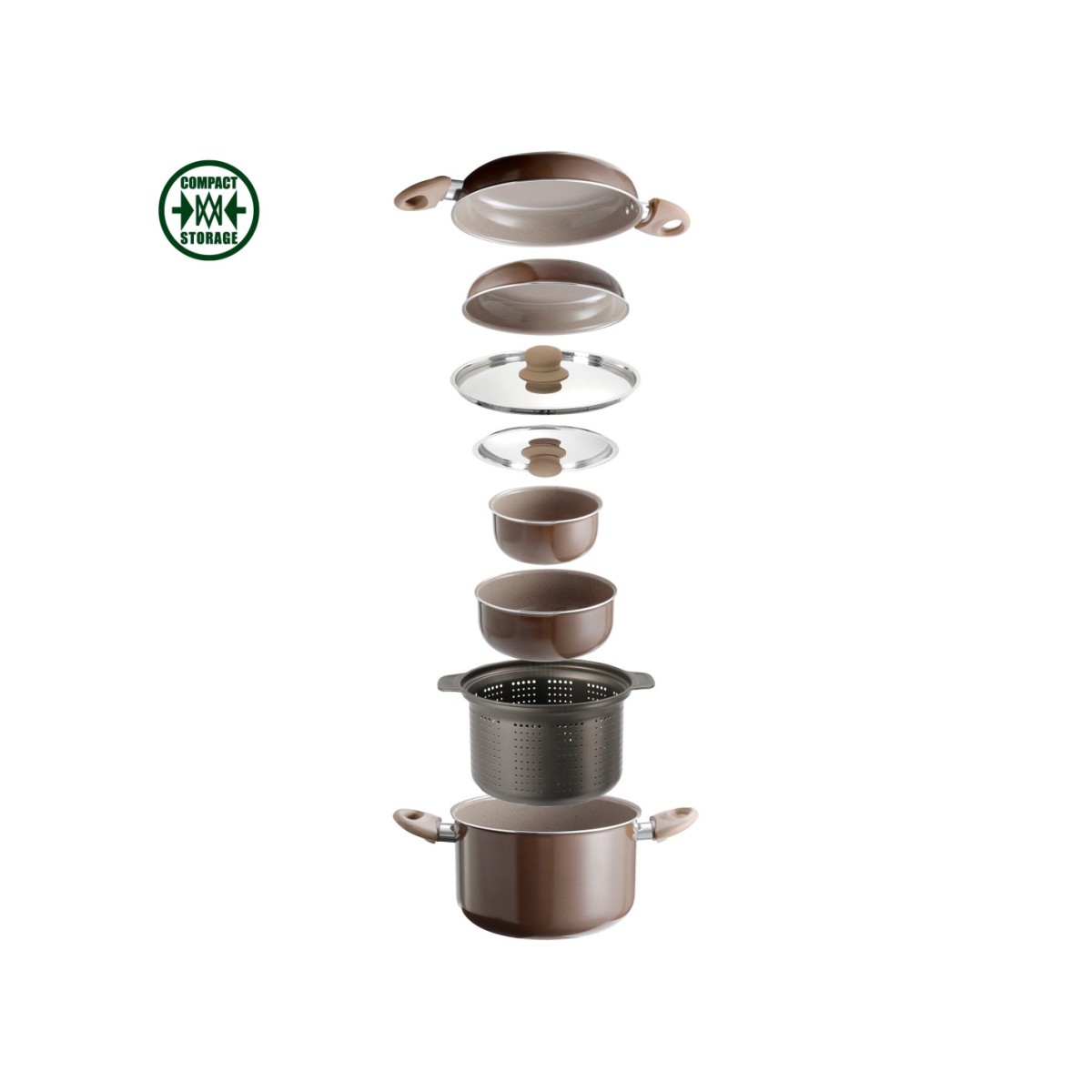 POPOTE SET DI PENTOLE CHOCOLATE 9+1 PZ DIAMETRO 22CM IN CERAMICA BATTERIE PENTOLE SALVASPAZIO E IMPILABILE REALIZZATA IN ALLUMINIO CON FONDO ANTIADERENTE:
